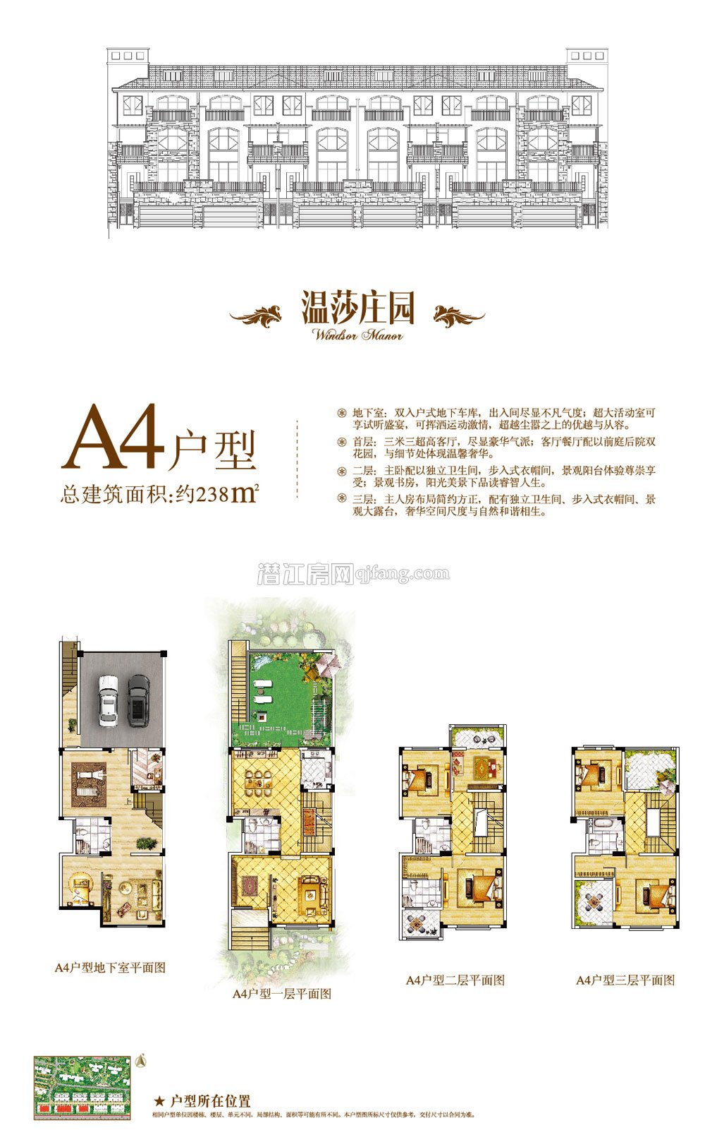 •层:三米三超高客厅,尽显豪华气派;客厅餐厅配以前庭后院双花园,与细节处体现温馨奢华。