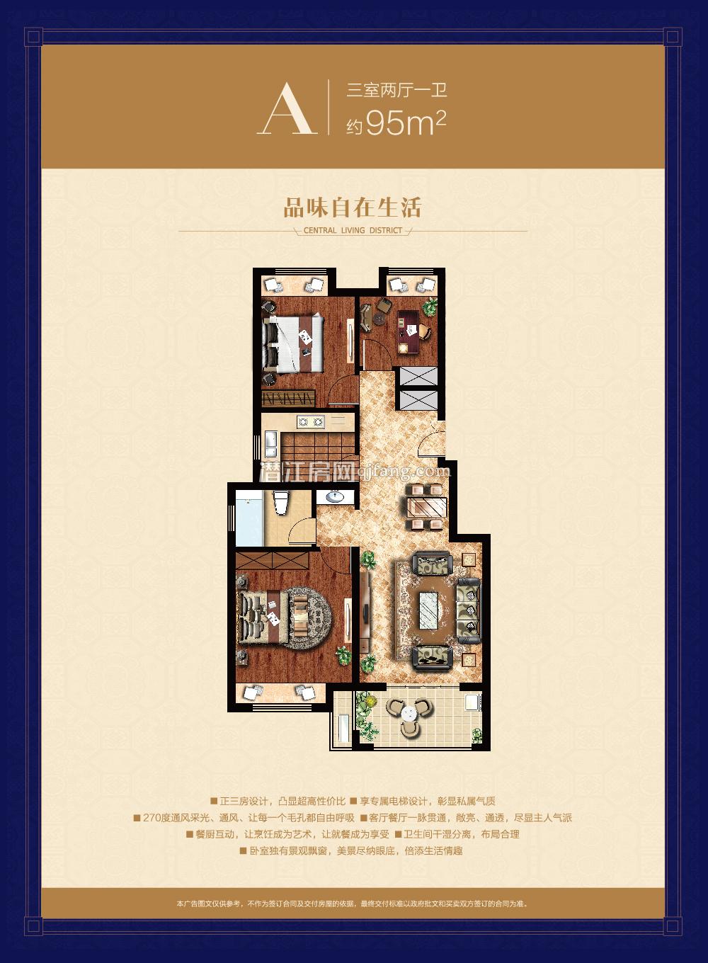 户型解析 独享电梯入户,彰显主人非凡气度; 私家小花园设计,跨出一步,生活更享受; 360度景观设计,凸显生活空间; 独有超薄设计,大开间、短进深,致舒服享受; 双厅联通设计,彰显主人奢华风范; 双卧朝南,引景入室,尽享沐浴阳光下的精彩; 豪华主卧,功能齐备,优雅自在; 南北双景观阳台,让生活与大自然紧密融合。