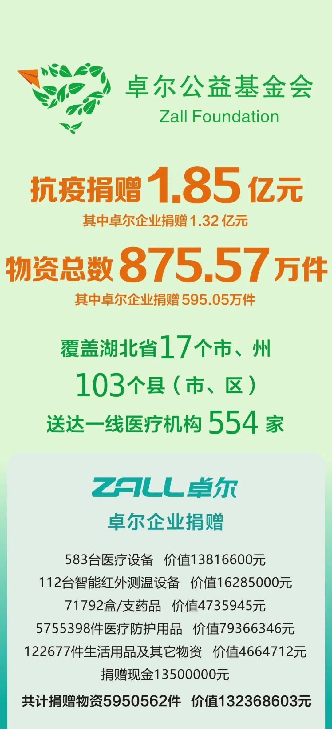 据统计,截至2020年3月6日,卓尔公益基金会已向抗疫一线捐送应急物资875 57万件,捐助金额超过1 85亿元。其中卓尔企业捐赠1 32亿元,爱心机构委托卓尔公益基金会捐赠5317万元。...[阅读全文]
