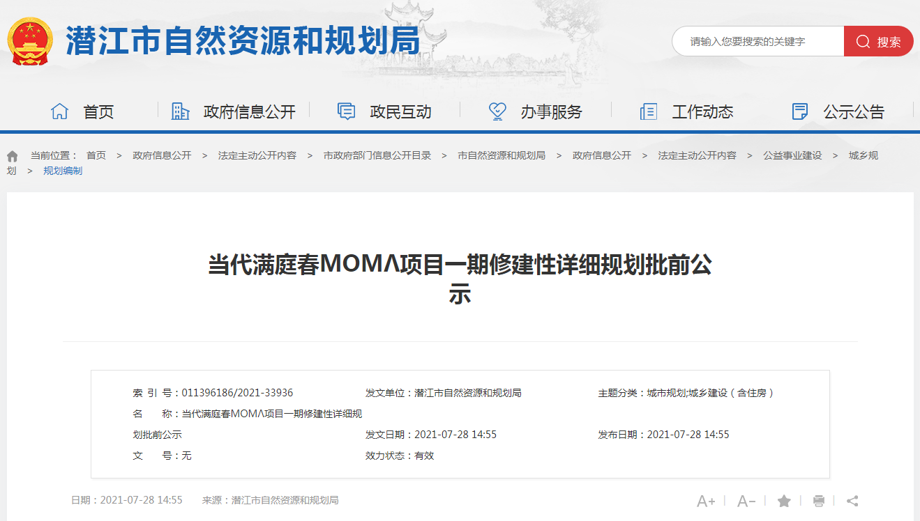 当代满庭春MOMΛ项目一期修建性详细规划批前公示...[阅读全文]