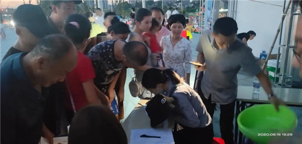 领取饮用水、扇子等消暑礼品