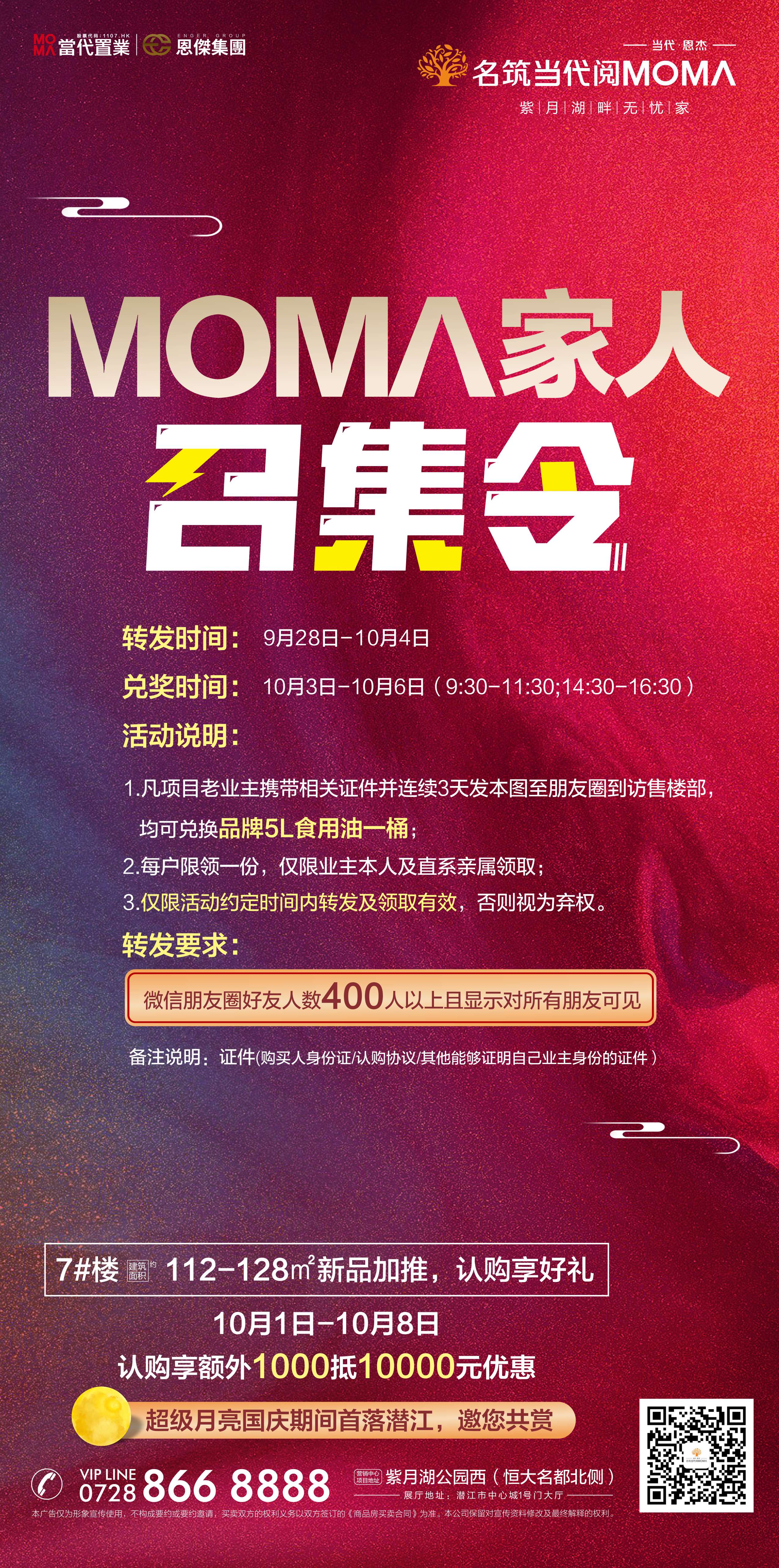 1、凡项目老业主携带相关证件并连续3天发活动图片至朋友圈到访售楼部,均可兑换品牌5L食用油一桶;