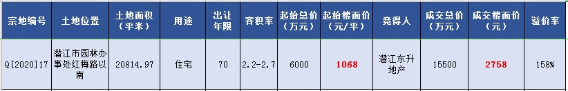 项目位于潜江市城南片区,红梅路以南,总占地面积约20815㎡,容积率2.7。该地块于今年9月份被东升地产以总价1.55亿元拍下,楼面价2758元/㎡。