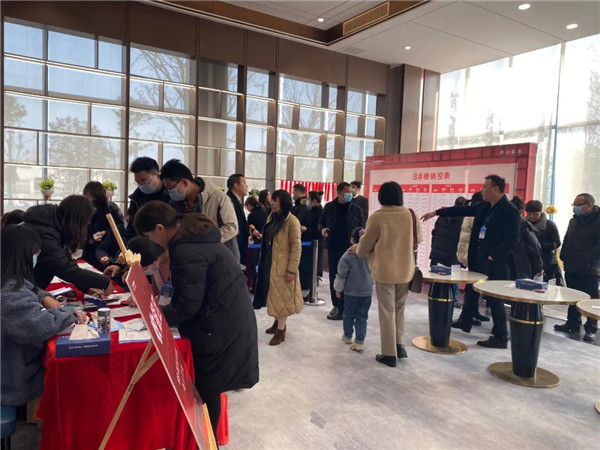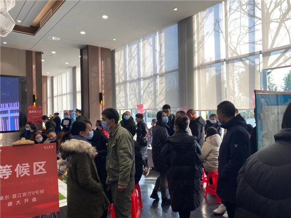 卓尔·潜江客厅8#楼12月5日倾城加推,多组客户共鉴开盘盛会,选房区房源销控一片飘红,取得了开盘即清盘的傲人佳绩,再次展现了项目的品牌实力与口碑!