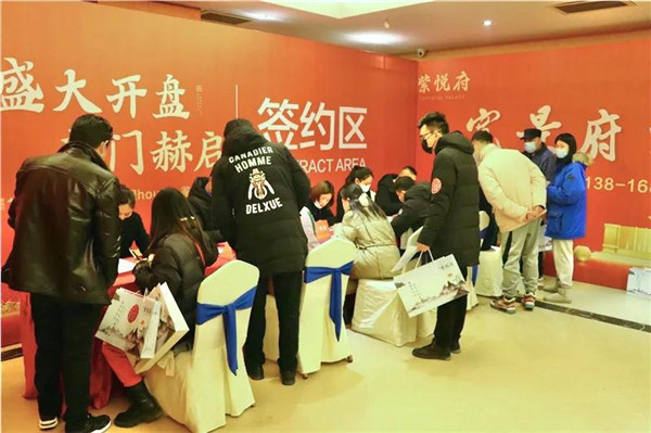 1月16日上午9点,开盘现场人潮攒动、人声鼎沸,签到现场摩肩接踵,活动内场等候区坐无虚席,工作人员热情的为每一位签到后的客户答疑解惑。