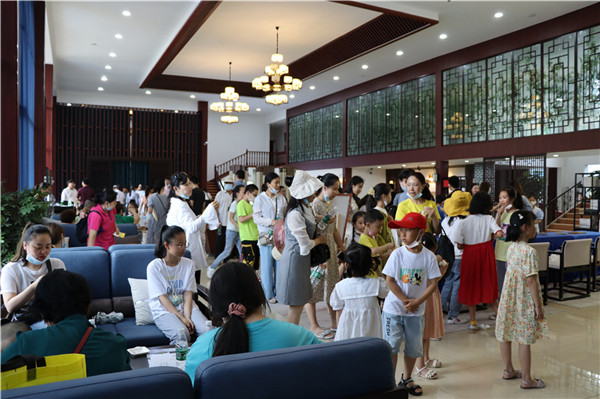做完香囊后,工作人员组织小朋友们玩起了互动小游戏。活动现场气氛非常活跃,可爱的小朋友们纷纷自告奋勇,上台唱起了歌,稚嫩的歌声回荡在营销中心里。