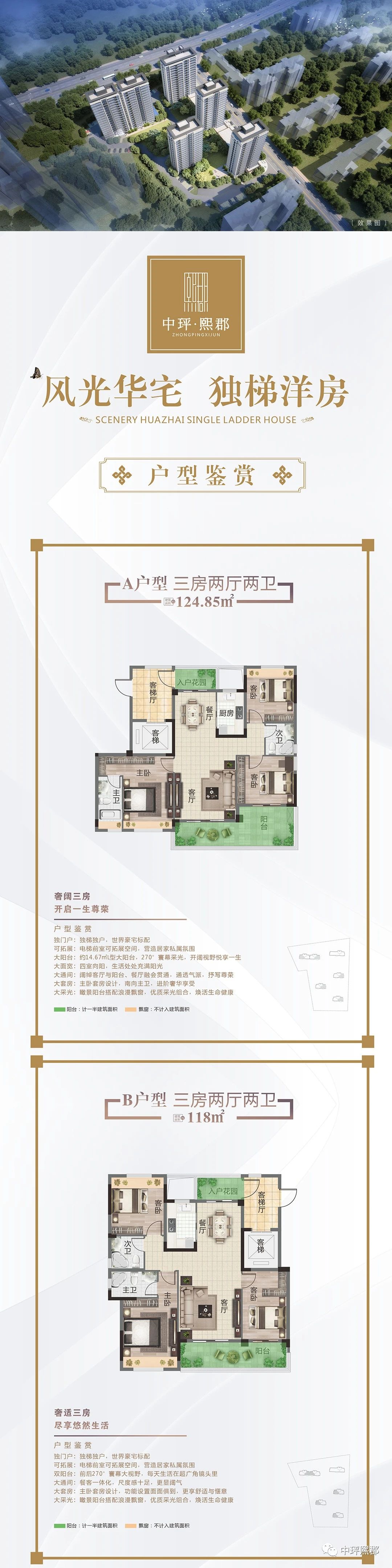 建面约118-124.85m²奢适三房