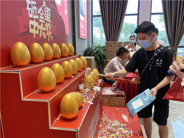 当天成交业主均可参与砸金蛋活动,微波炉/吸尘器/电饭煲等好礼静候,一声声砸金蛋此起彼落,砸到大奖的客户难掩兴奋喜悦之情。砸中的每一件家电好礼,都是东升·林语漫城为业主送出的美好祝福,选到心仪的房源,拥有属于自己的家园,在这里每一天的生活都温馨自在。