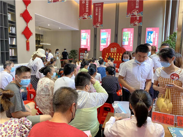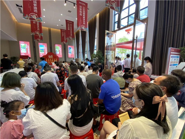 早上8点半,东升·林语漫城营销中心的签到区便围满了前来选房的客户,据悉此次活动采取的是先签到领号,按号码牌入场进入选房区的方式进行签到,营销中心内人群摩肩接踵,热情纷至沓来。