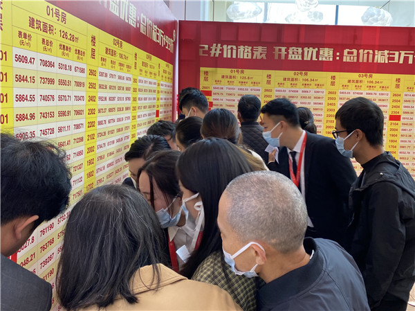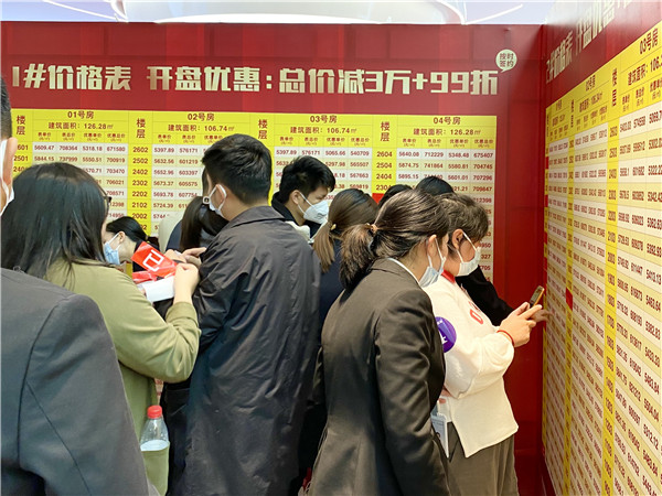 面对转瞬即逝心仪房源,许多购房者为了抢到房子,早在选房等候区敲定多个备选户型,一进入选房区就在置业顾问的协助下进行算价,敲定户型。短短数小时,销控版已一片飘红。