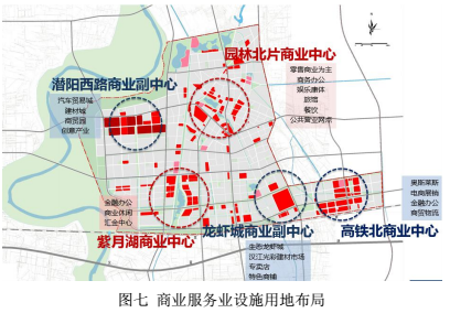 事实上随着这些年的发展,潜江城区商业服务业的分布已然形成“两中心,三副中心”的局面。分别是园林北片商业中心,紫月湖商业中心,潜阳西路商业副中心,龙虾城商业副中心,高铁北商业中心。