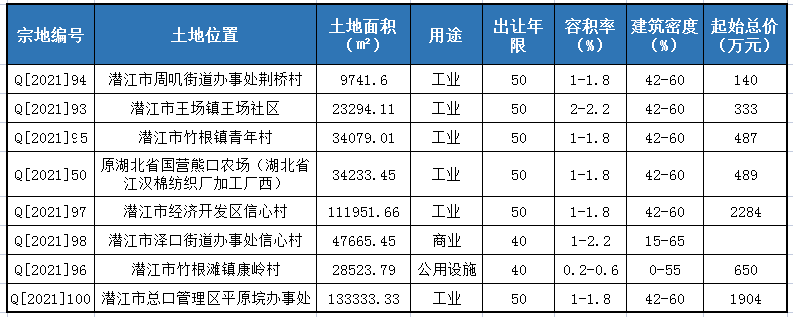 剧上表显示,1月份潜江土拍中主要地块都在潜江市区周边,周叽1宗、王场1宗、竹根滩2宗、熊口1宗、泽口1宗、总口1宗、经济开发区1宗。这次土拍和往日的土拍也大不相同,以往土拍在潜江市区以住宅用地为主,市区人口众多,商业、教育、医疗等配套纯熟,交通便捷。本次挂牌地块,皆为城镇边缘,用于工业。
