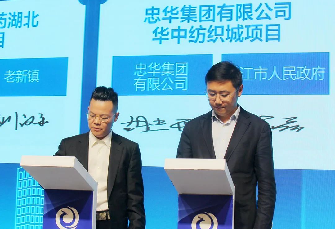 4月18日下午,潜江市4月份招商引资项目集中签约仪式隆重举行,忠华集团华中纺织城项目即将落地潜江,中伦集团董事长胡忠开先生受邀参会并致辞。