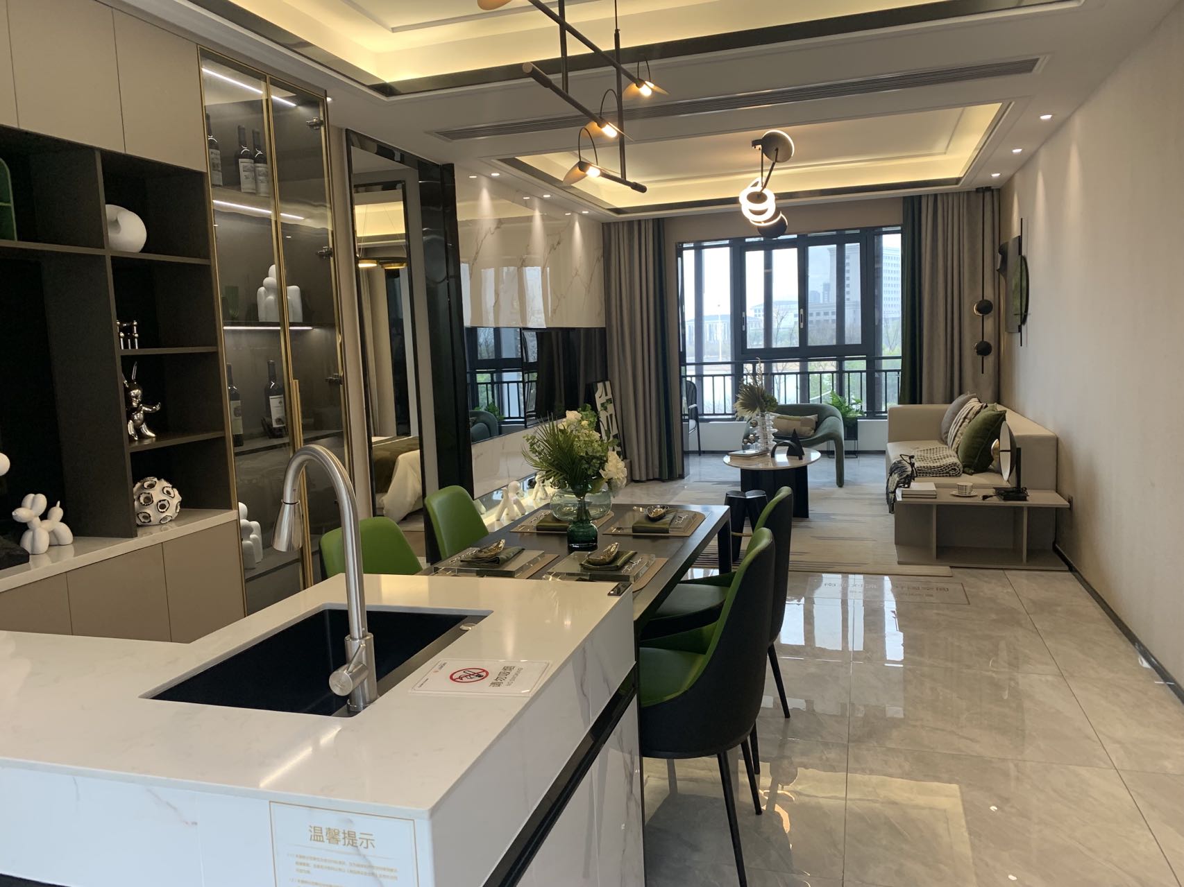 餐客一体大开间横厅设计,尺度超级惊艳。三开间朝南,南北双阳台设计,双套房设计,为改善人群定制。看着这阔绰大横厅,别说是跳操了,横竖打滚都不在话在。
