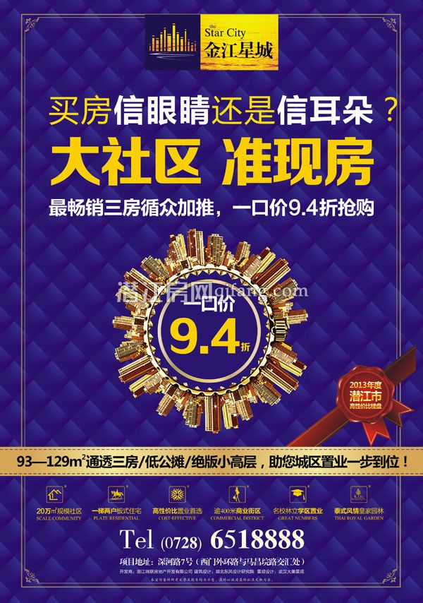 金江星城在售房源93—129㎡低公摊通透三房,畅销三房循众加推,