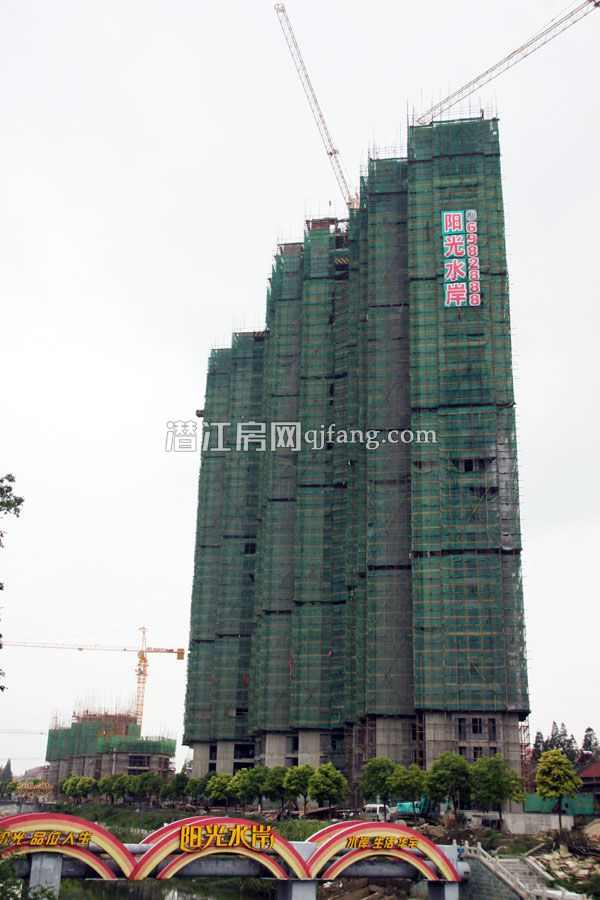 阳光水岸4#楼共25层,目前正在进行内部隔断,商铺共2层,外墙砖已完工;3#楼共31层,已建设至29层;2#楼共31层,已建设至4层;1#楼共31层,桩基建设已完成。