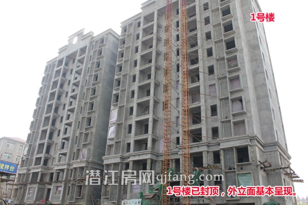 据悉1号楼共24层,184户,现已封顶, 外立面基本呈现,后期将进行墙面粉刷工程。