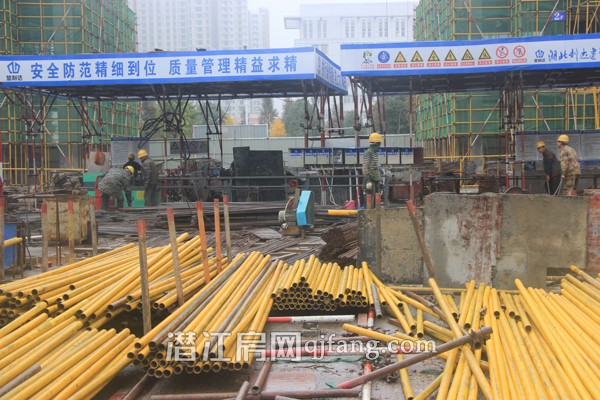 目前项目在建的1.2.3.4号楼,目前3号楼共11层,现建至6层,2号楼建至5层,共10层。1号楼共10层48户,建至5层。4号楼共17层,共100户,现建至6层。工地上施工建材整齐摆放着,工期井然有序的开展着。