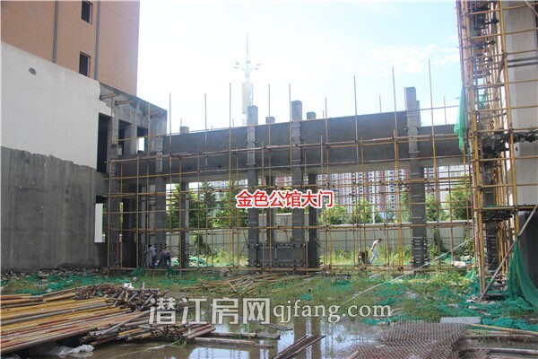 金色公馆1#楼脚手架已经拆除、外立面施工基本建成、、6#楼已建地上一层、二期工程也在施工建设中。