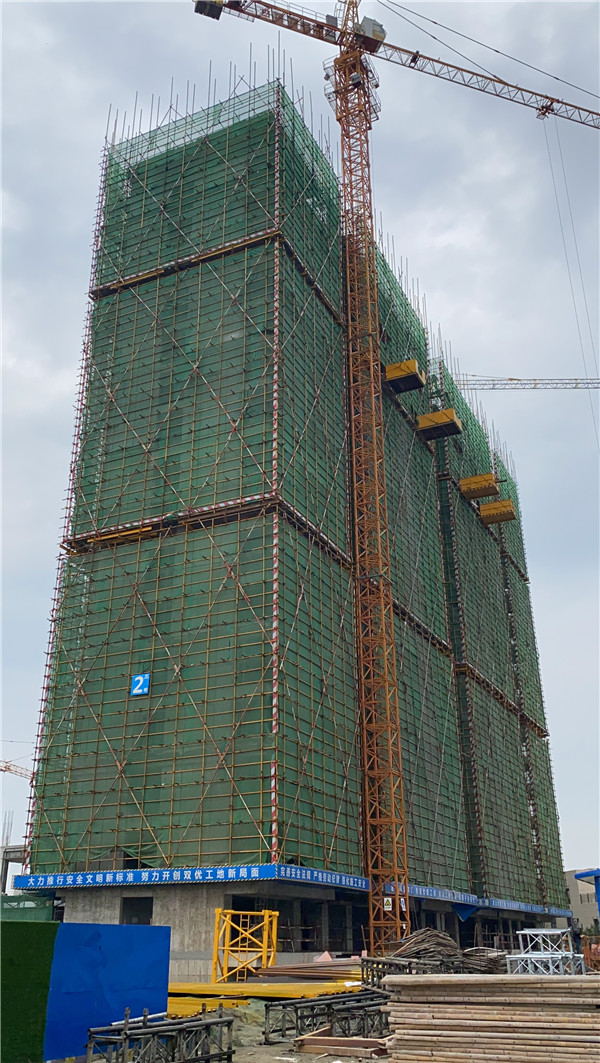 2#楼17层结构墙柱封模加固、18层平板绑扎梁部板筋作业