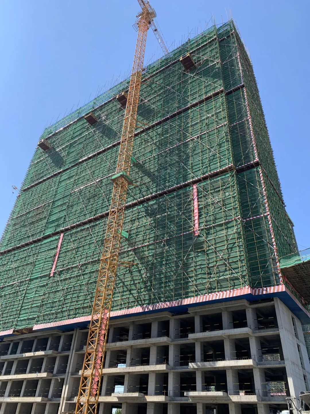 11#楼东单元十七层主体放线,悬挑工字钢搭设,十六层墙体拆模,混凝土养护