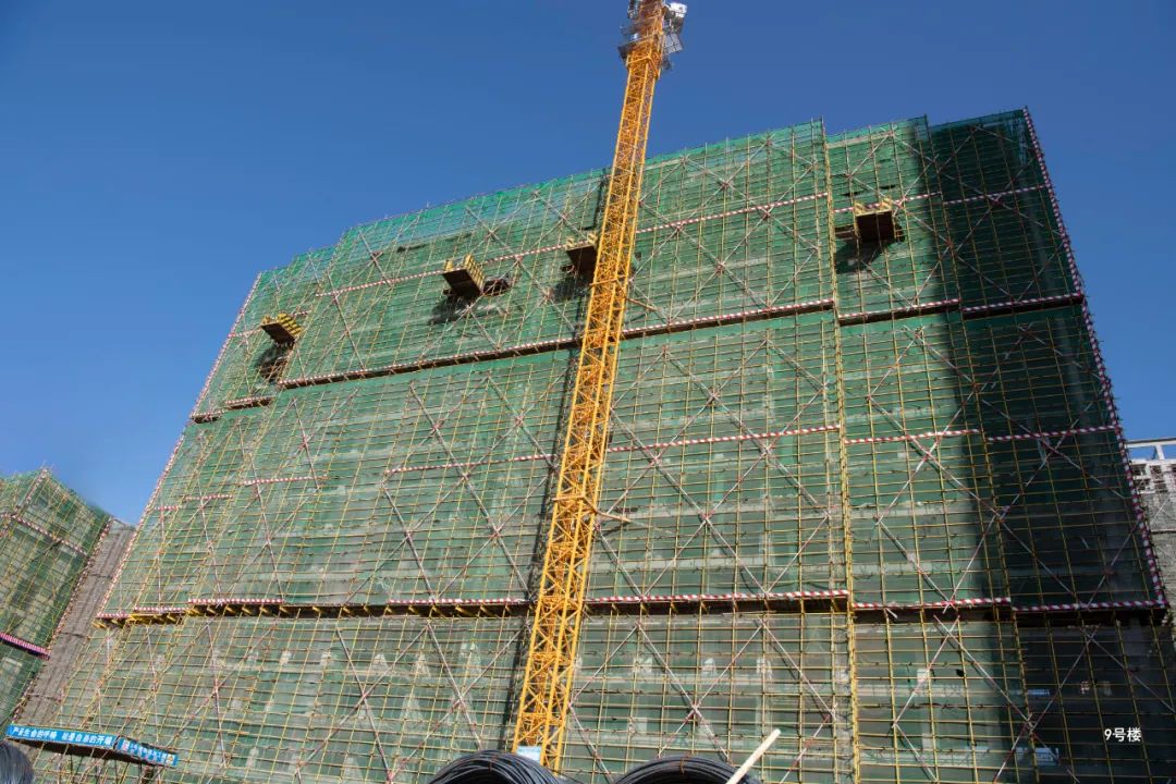9#楼——西单元十六层主体放线,墙柱钢筋绑扎,墙体合模,十五层墙柱拆模。东单元十六层支模架搭设,十七层梁板模板安装,梁板钢筋绑扎