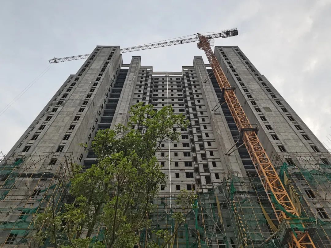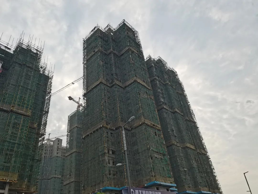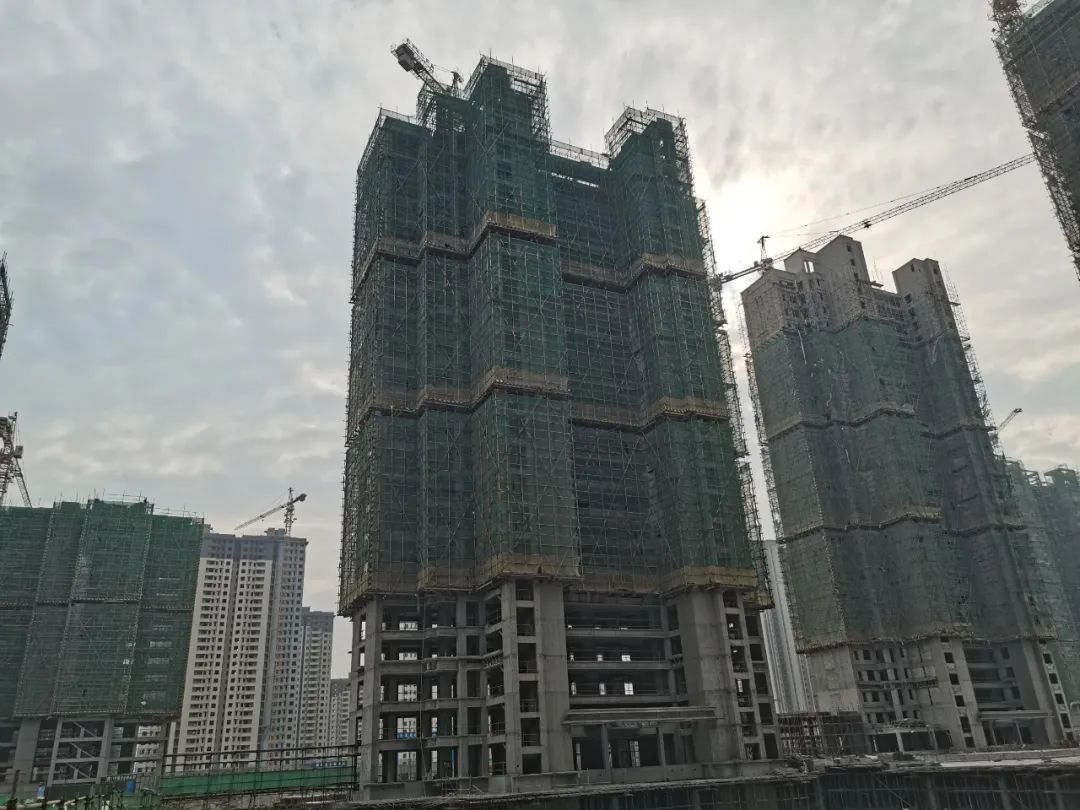 3#楼主体结构、装饰装修抹灰完成;外架拆除至11层;栏杆、窗框12~27层安装安成。