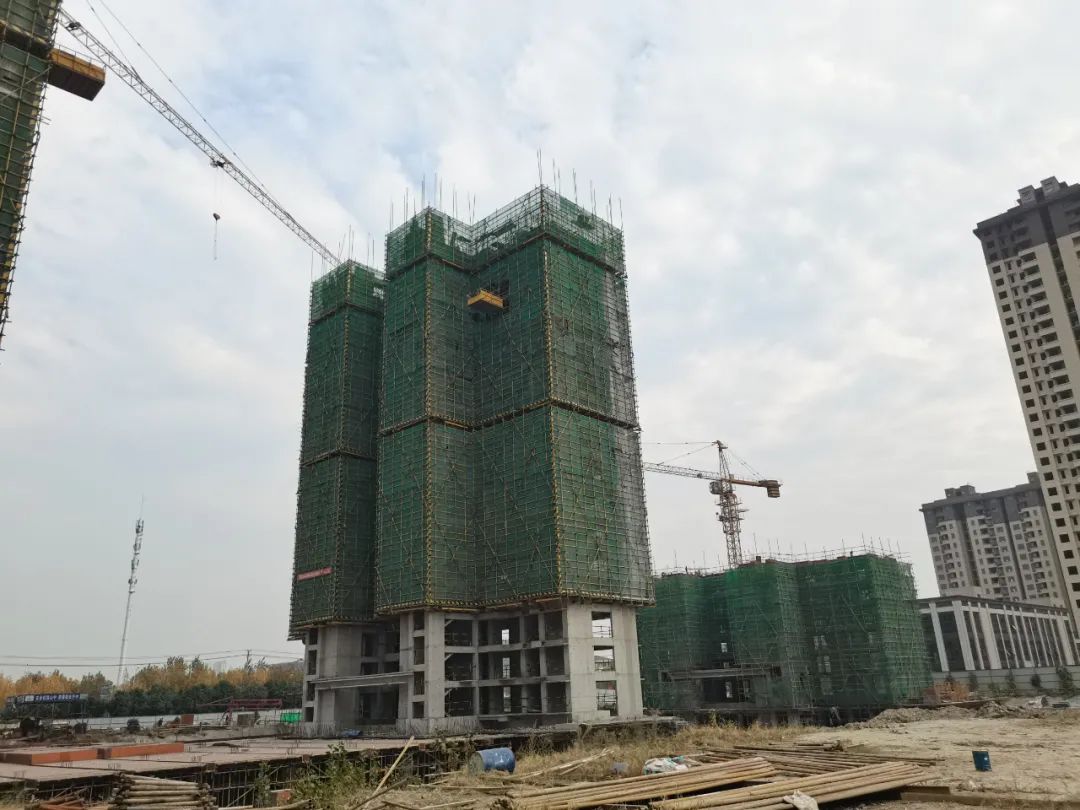 11#楼东单元十七层结构完成50%;西单元十六层结构完成75%。