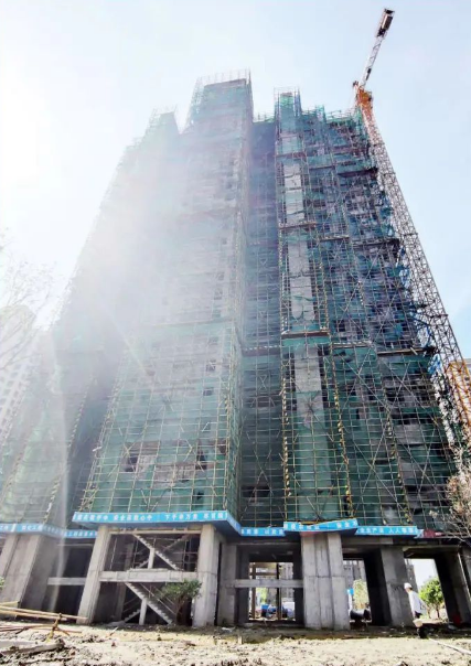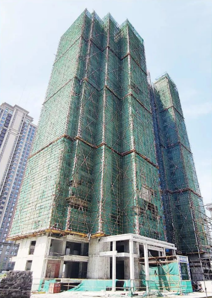 11#楼主体结构封顶,砌体施工完成,外墙抹灰完成,内墙抹灰完成80%,外架拆除完成,阳台栏杆安装完成,窗框安装完成,外墙腻子完成20%(外架、外挂梯已安装,塔吊已安装)
