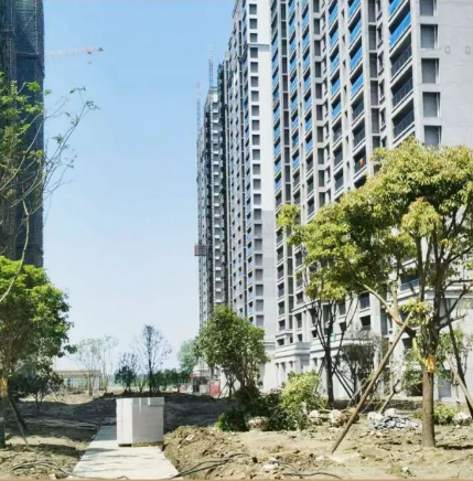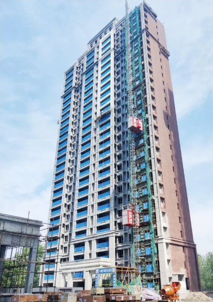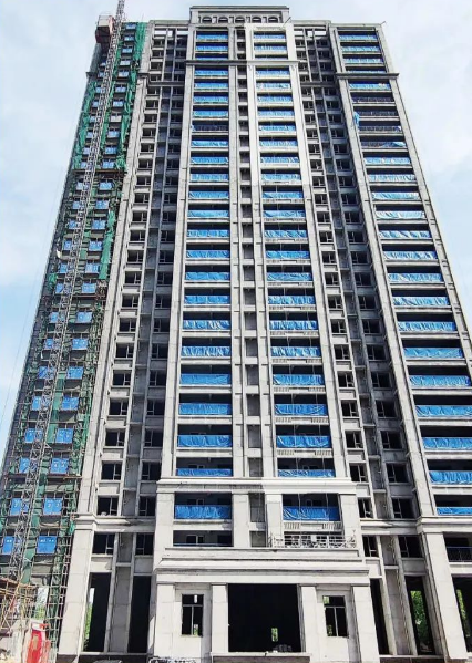 1#楼主体结构封顶,内外墙抹灰完成,外架拆除完成,外墙涂料施工完成,保温地坪施工完成,外窗安装完成,阳台栏杆及百叶安装完成,室内电梯安装完成,(外架、塔吊、外挂梯已拆除完成)