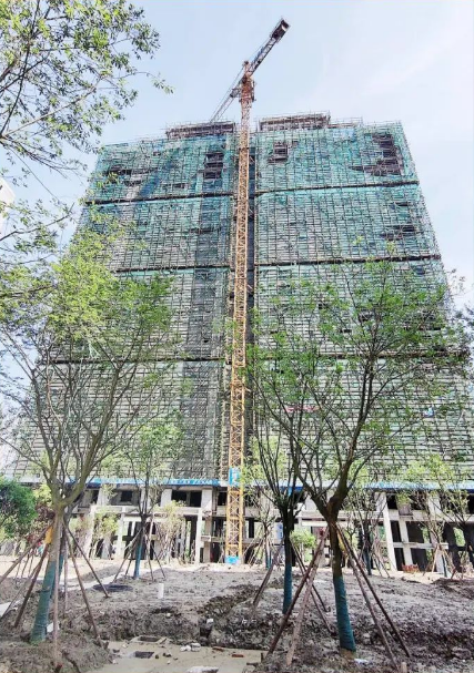 6#楼主体结构封顶完成,砌体施工完成80%(外架、塔吊已安装)
