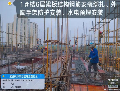 1#楼6层梁板结构钢筋安装绑扎、外脚手架防护安装、水电预埋安装