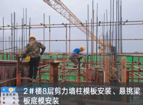 2#楼8层剪力墙柱模板安装、悬挑梁板底模安装