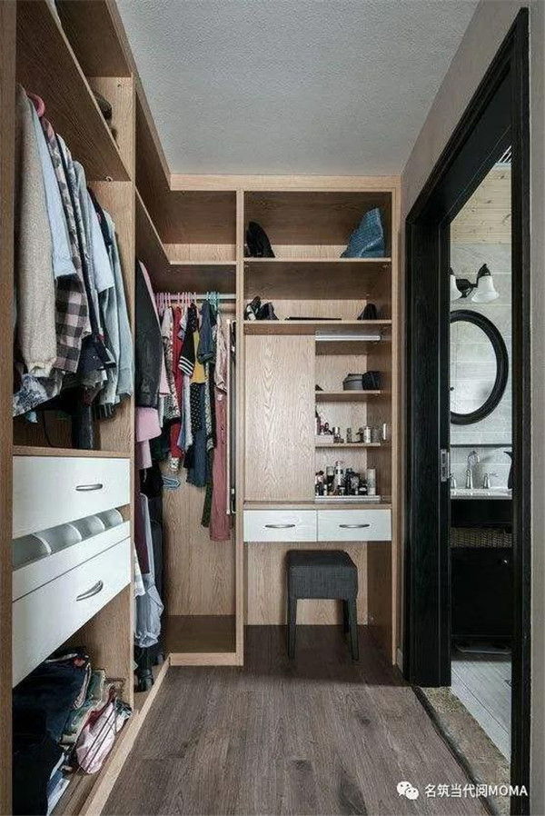名筑当代阅ΜΟΜΛ套房式主卧,设置独立的衣帽间,收纳四季服装,靓丽装扮随心挑选,成就女主人追求时尚的梦想。优雅生活,从尊贵女主人的衣橱说起。
