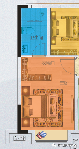 主卧自带独立衣帽间、卫生间