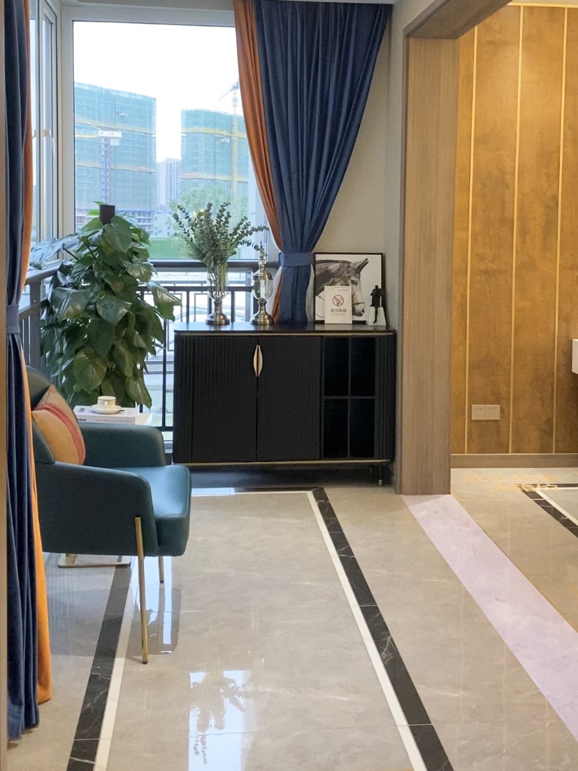 入户花园尺寸宽敞、采光良好,可以作为茶室待客小憩,沿窗台还可以打一组储物地柜,既美观又实用。摆上几盆绿植,看着窗外的风景,晒着微微的太阳,享受着惬意轻盈的下午茶时光,日子也是相当的舒适洋溢。