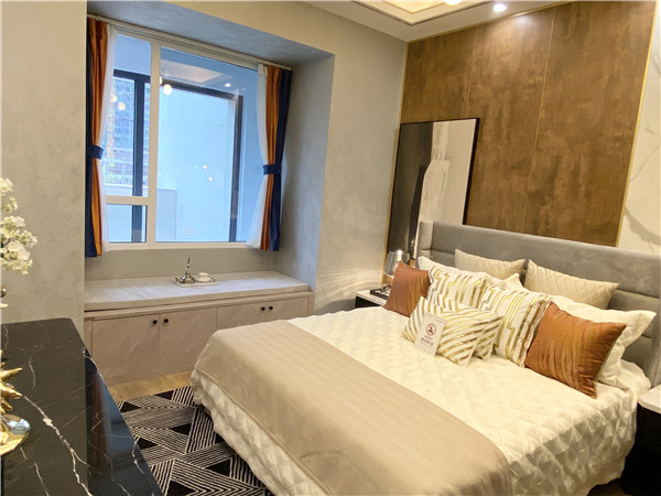 私密是卧室的代名词。朝南主卧宽敞通透,尽显尊贵气质。南向浪漫飘窗,让室内采光更充裕,闲暇之际,捧一本书、品一杯咖啡,生活便是如此静谧安好。配备独立专属卫浴及步入式衣帽间,让生活更显精致优雅。