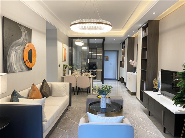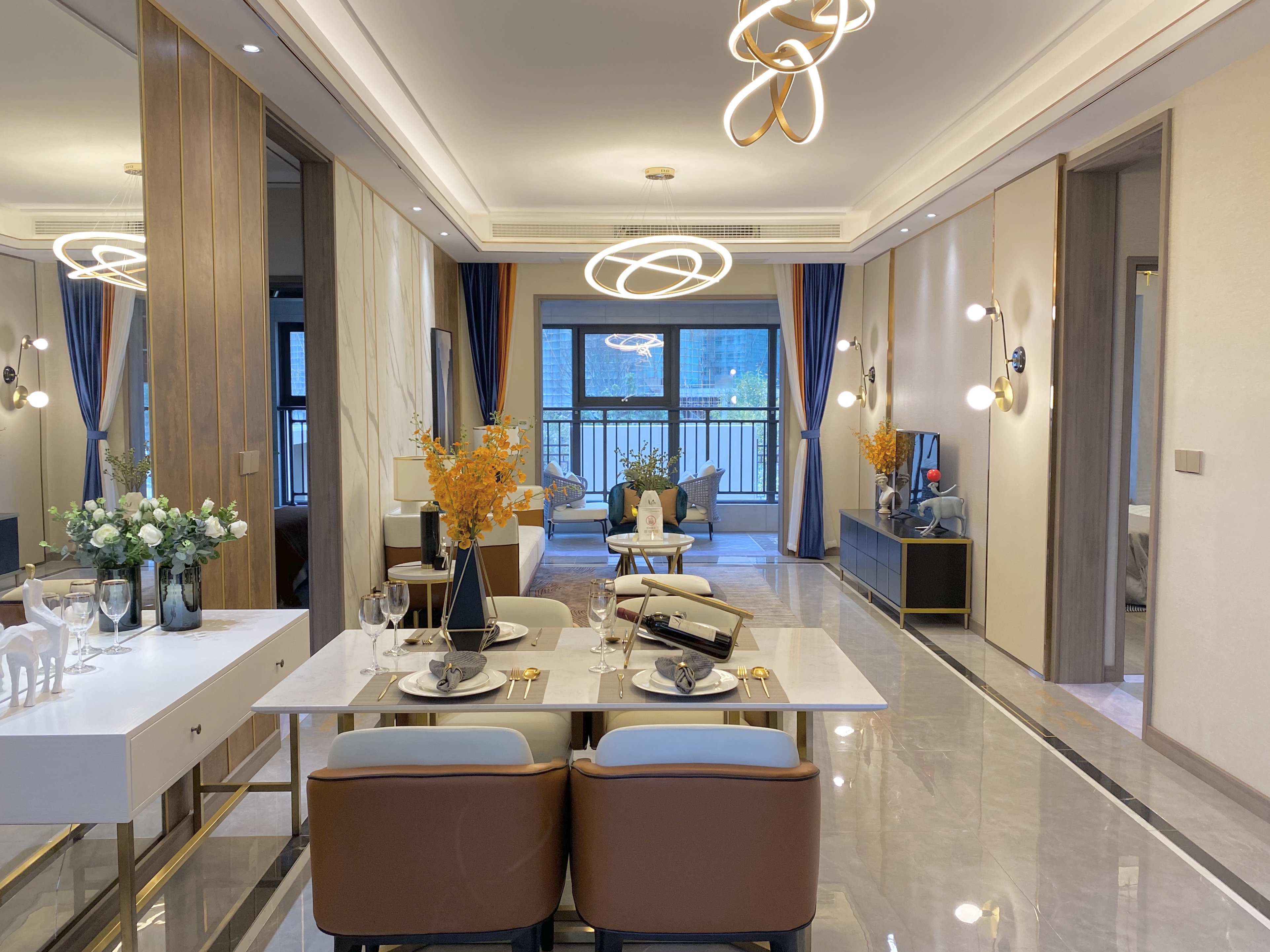 餐厅与客厅豪华一字厅设计,通达南向宽景阳台,营造舒适的居住空间。南北通透,引清风美景入室,宽阔开间,独韵尊贵待客之道。午餐的香气与客厅的欢笑交织传递,这里成为全家人的温馨乐园。闲暇时光,或喊三五好友畅谈人生,或邀同事酌酒谈事,奢阔空间彰显尊贵大气的生活品味。