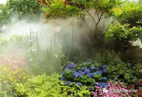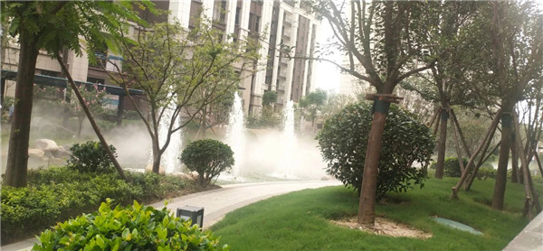 人行其间,犹如漫步在仙境,满足业主回归自然和美妙环境的追求,若隐若现、朦朦胧胧的烟雾,犹如在空中舞动的白色精灵,使各种园林景观平添一份神秘,优雅。