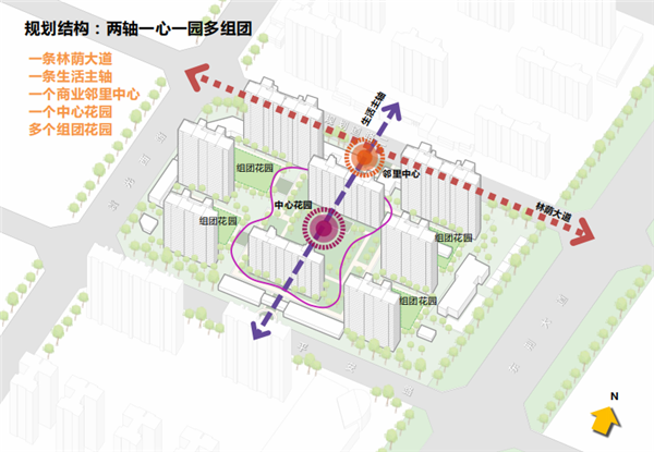 住宅区巧妙地结合现代景观的设计手法,利用院墙,植物等形成街巷和院落空间,增强层层递进的序列感和迂回曲折的空间表达,进而引导人们的行为方式,层层递进,找到自己的归属感。