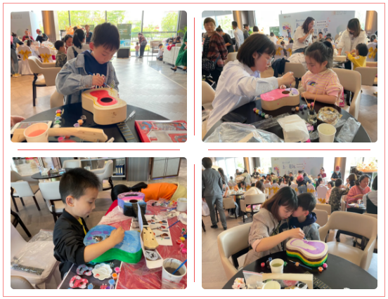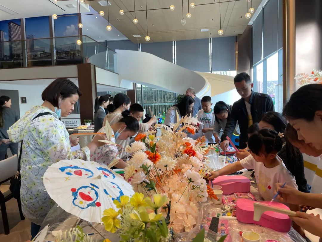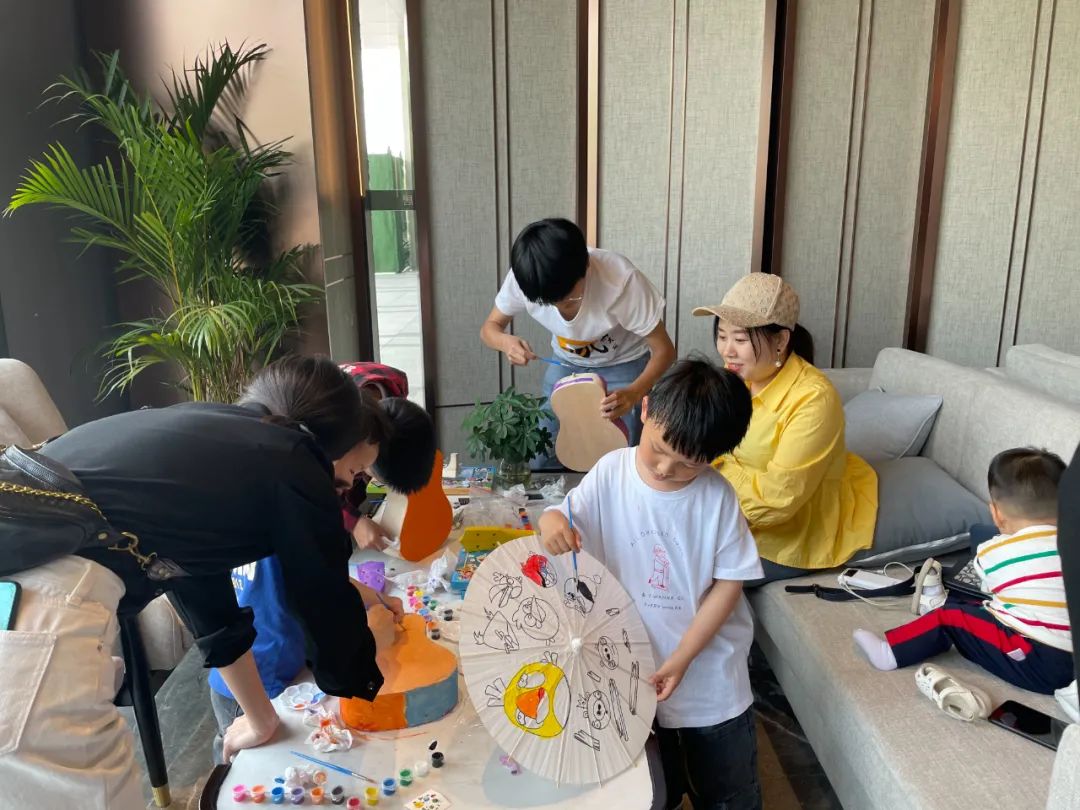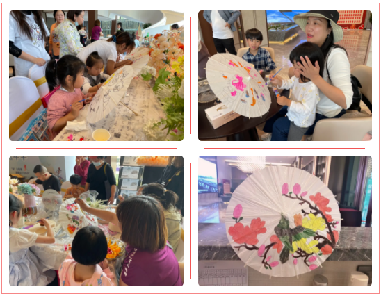 油纸伞上呆萌的卡通形象、调色盘和涂料