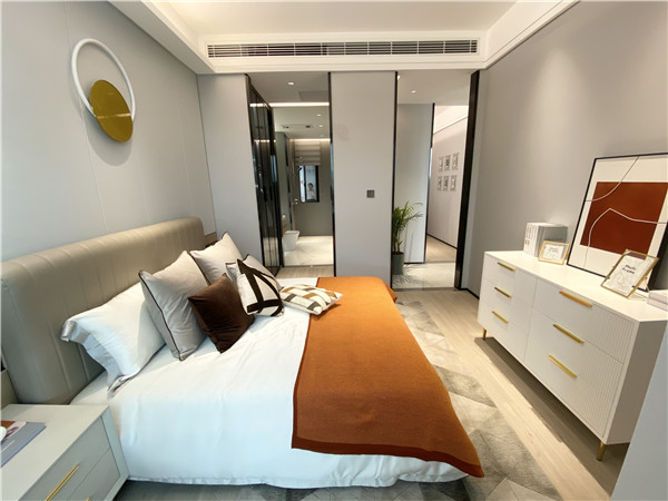 南向主卧套房设计,不仅拥有南向瞰景飘窗和衣帽间,更是配备了宽绰独立的卫浴间,干湿分离,分区合理,明窗相伴,能够减少因潮湿引起的细菌滋生,便利性与隐私性并存,家人生活互不干扰,让居者行动自如。