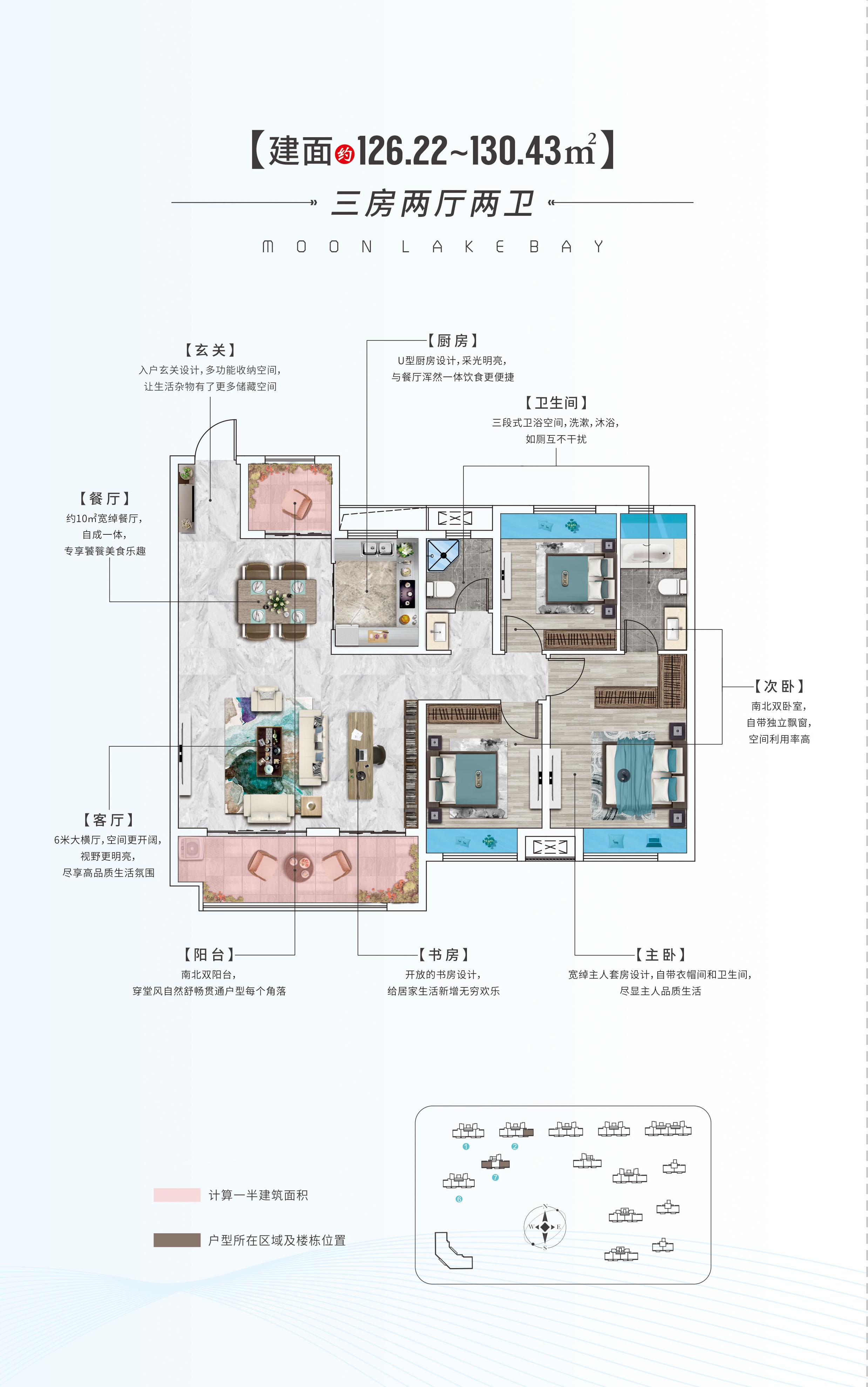先来说说即将要开盘的纯新盘月湖湾,建面约126-130㎡三房两厅两卫户型,在三房两卫标配下,增设有玄关、衣帽间等提升生活质量的功能区;双阳台南北对流同时,主卧与主卫、两次卧也做到南北向垂直通风;主卧、次卧南向双飘窗,增加卧室采光的同时为平淡的生活增加了一些小乐趣。项目目前已经启动诚意登记,即将开盘!