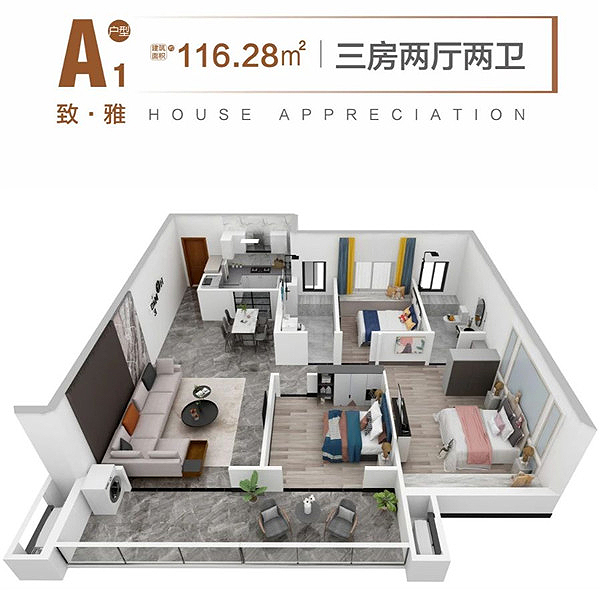 东立壹品建面约116㎡雅致三房
