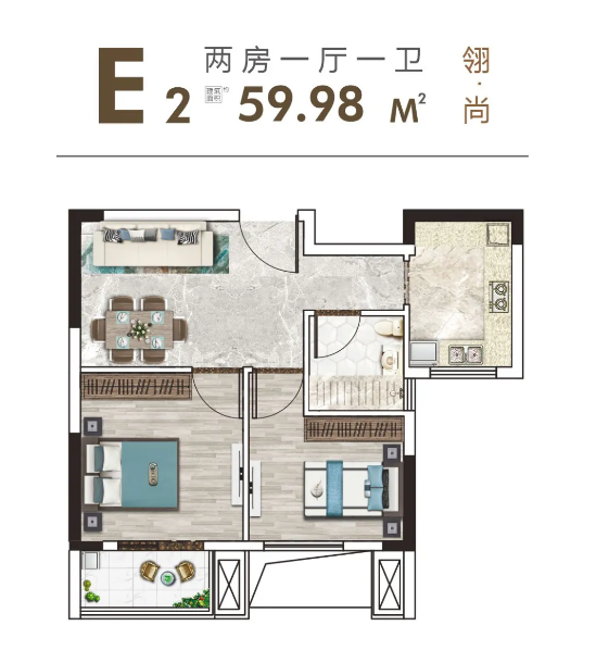 两室一厅的紧凑布局设计,恰好的空间,合适的距离,于此享受适宜的生态阳光生活。阳光充沛,晨起鲜氧,健康生活从这里开始。生活本身就是一种情调,而明亮的阳光空间也让生活更有温度。