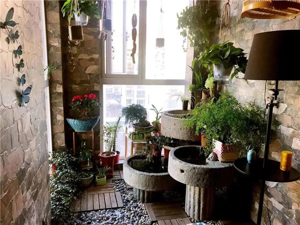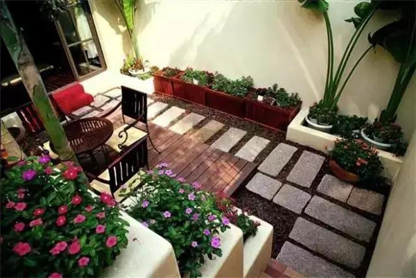 高低错落的小型球形灌木,植物的搭配摆放精心设计