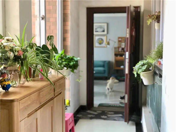 而鞋柜顶上的台面也可以作为绿植摆设的位置,