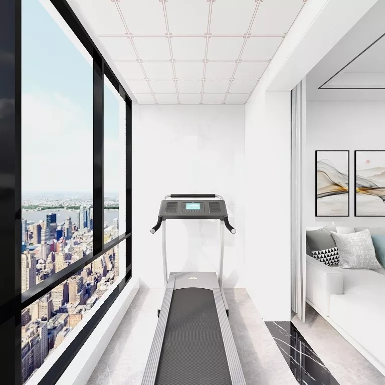有了L型转角阳台,不用担心跑步机没处放了,也不用担心健身影响家人休息。而且还能一边吹着舒爽的自然风,一边欣赏着楼下的美景,无聊的健身时光也变得有趣起来。