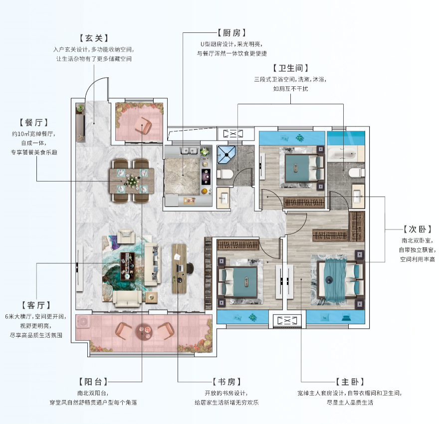 客厅、主卧朝南,双阳台设计