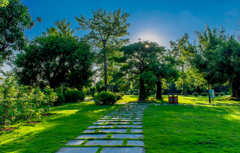 延伸举例:漫步鲜氧园林,在快节奏的生活中,偶尔做个躺平青年也挺好。